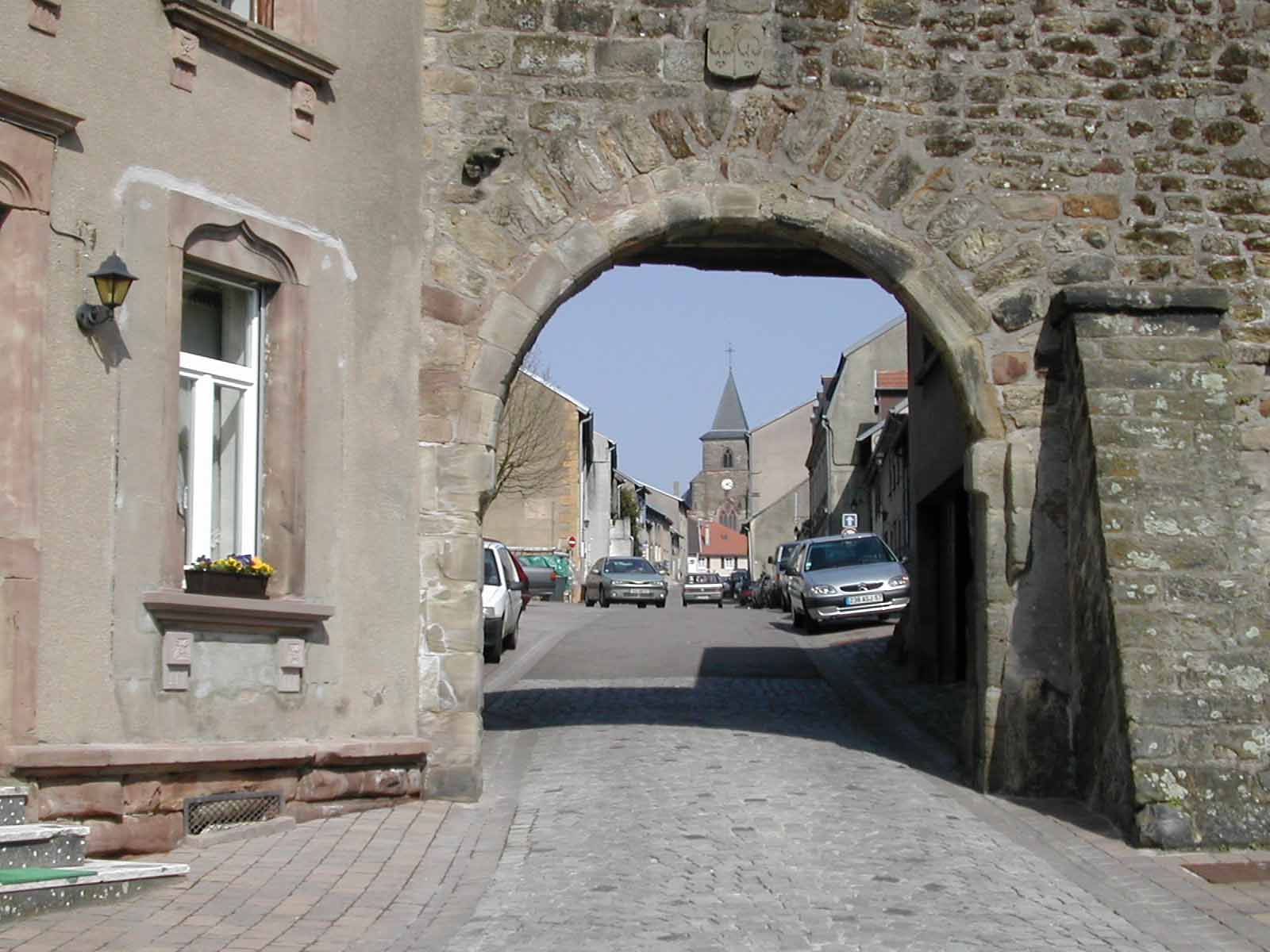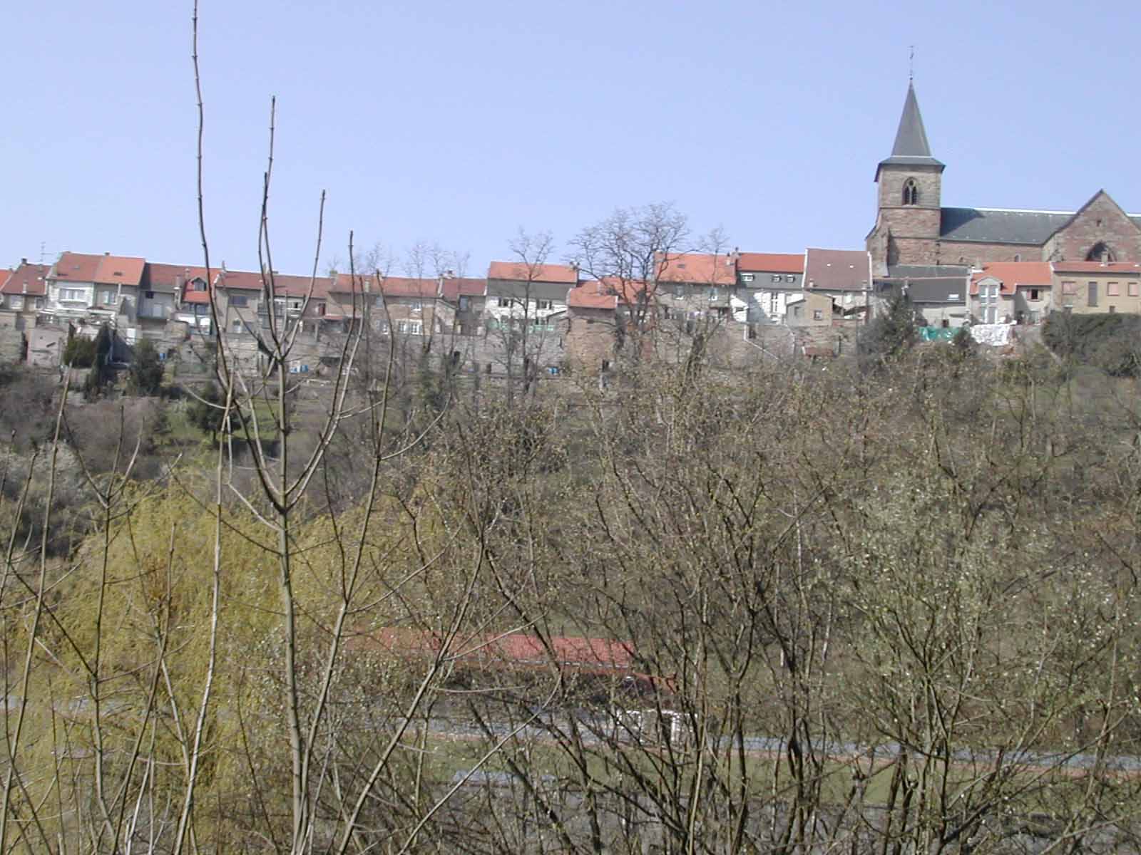 Das ist die Gesamtansicht von Hombourg-Haut, einem Städtchen auf einem kleinen Berg, zusammengehalten durch eine mittelalterliche Stadtmauer, dominiert von einer alten Kirche: